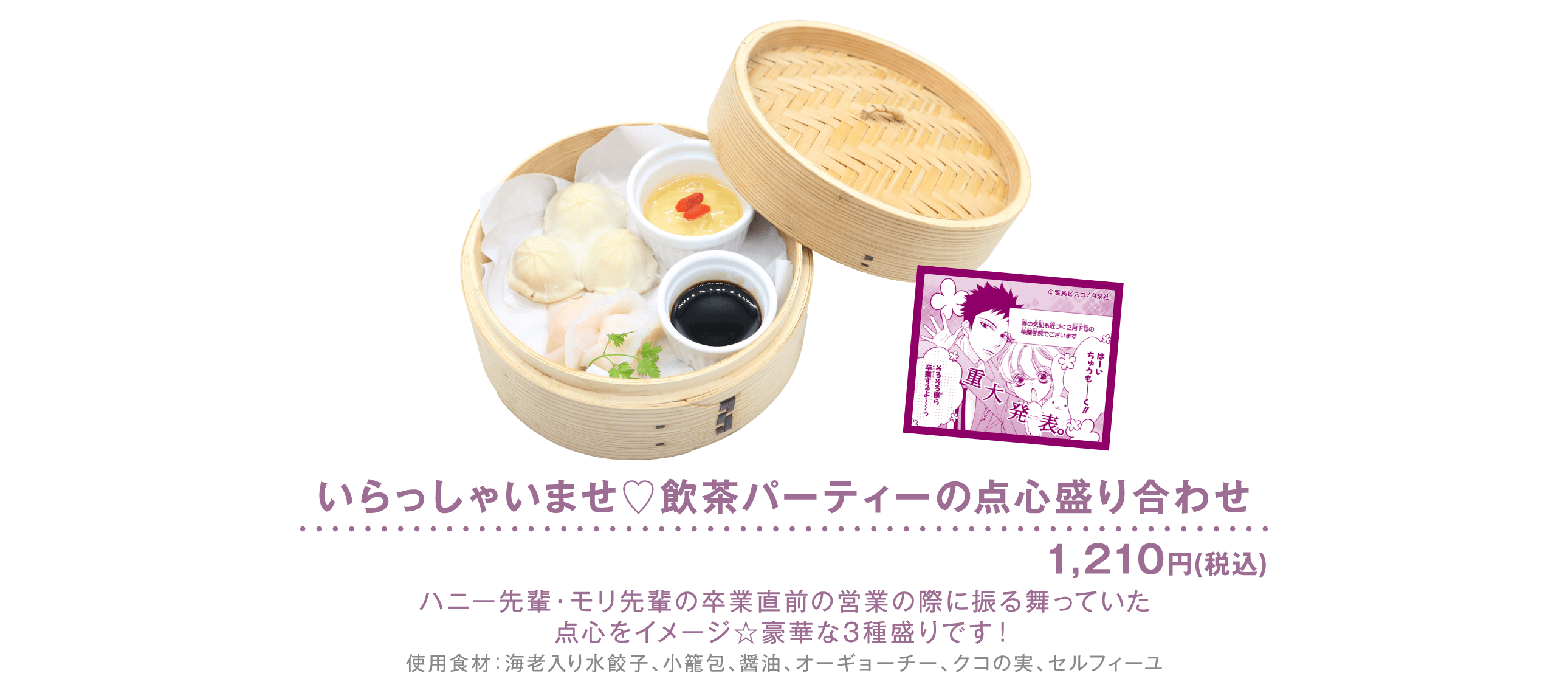 ※画像はイメージです。※メニューは制作途中のため、変更になる可能性があります。※価格は予価のため、変更になる可能性があります。※材料手配の都合上、メニューが品切れる場合がございます。※ドリンクは全てノンアルコールです。